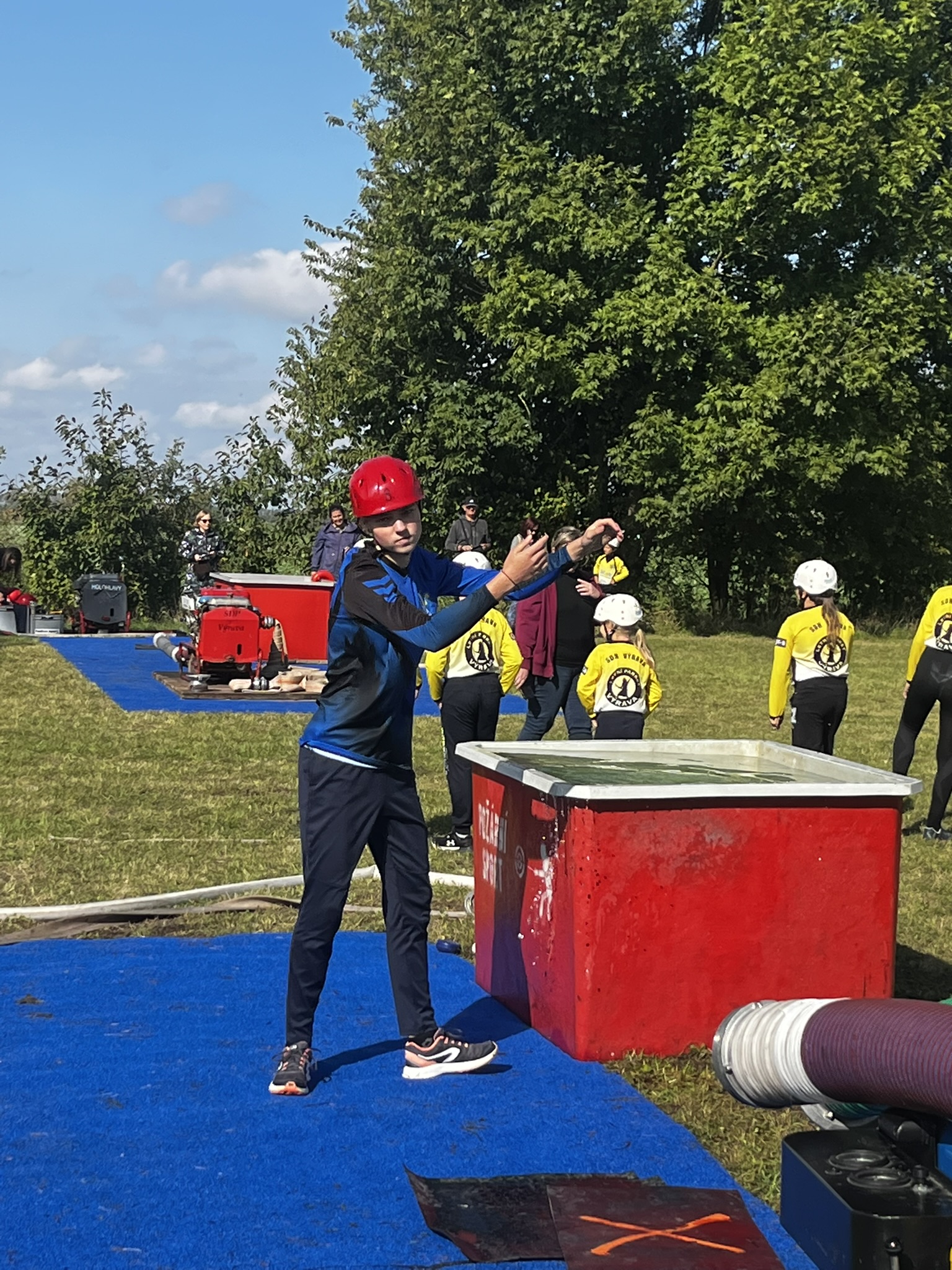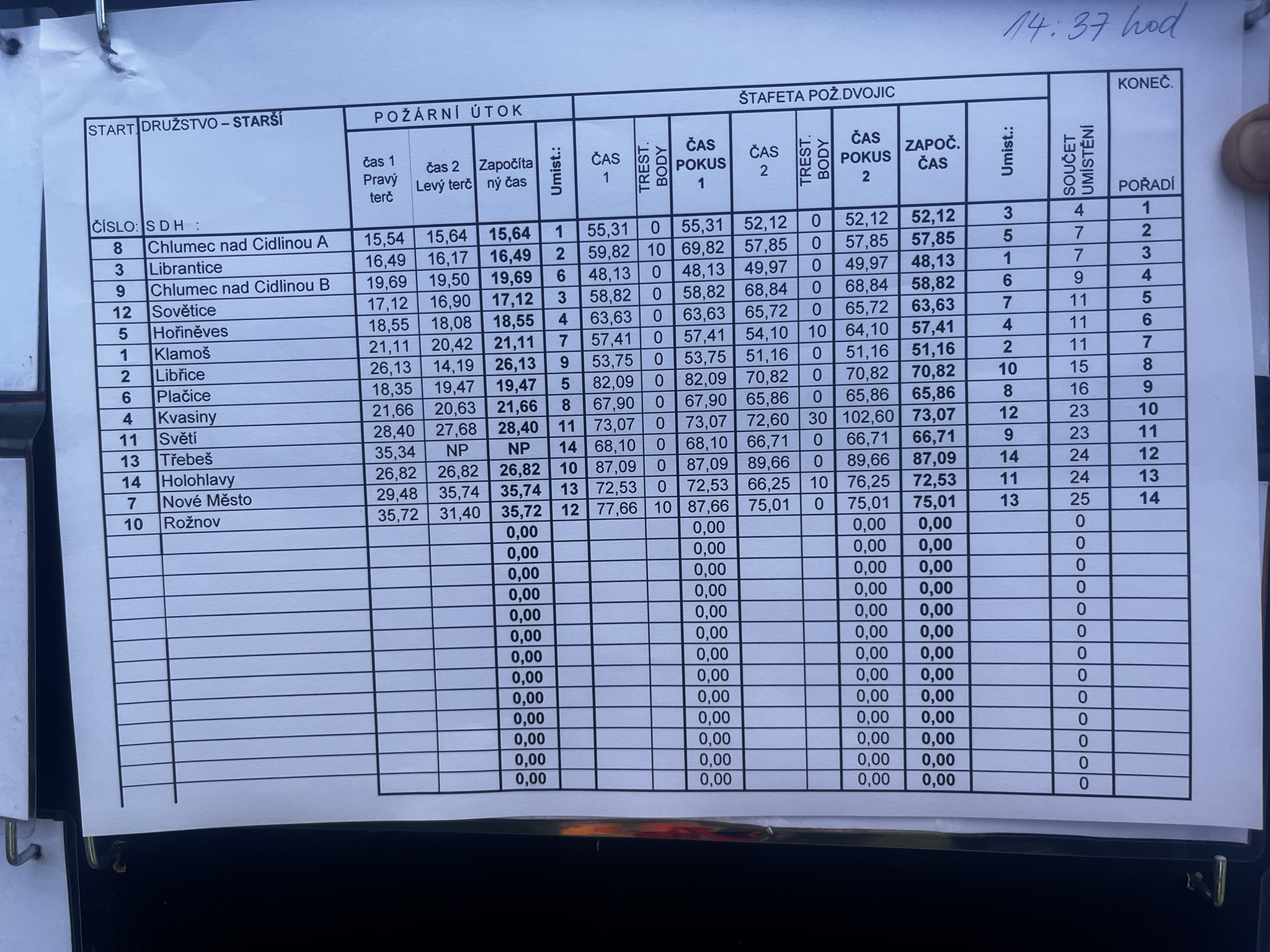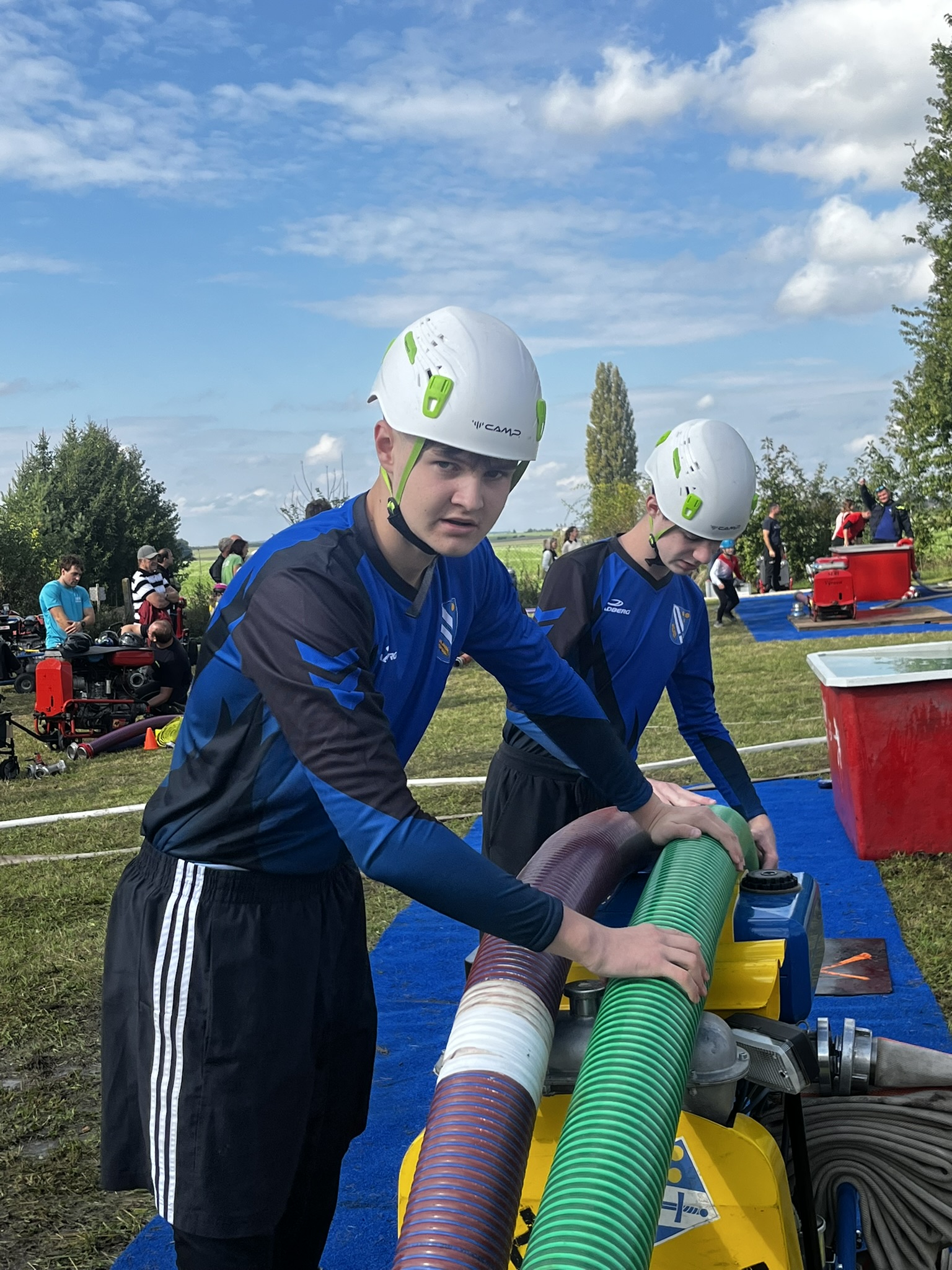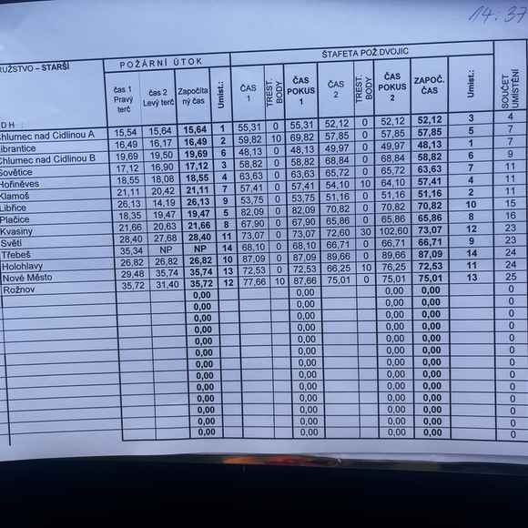 Poté přišla řada na starší žáky, kteří zahájili soutěž disciplínou štafeta dvojic. První pokus se nevydařil kvůli penalizaci, ale v druhém ukázali, že se jen tak nevzdávají – čas 57,85 sekundy znamenal výrazné zlepšení. Když poté přidali požární útok v čase 16,49 sekundy, vybojovali skvělé 2. místo z 14 soutěžních družstev.